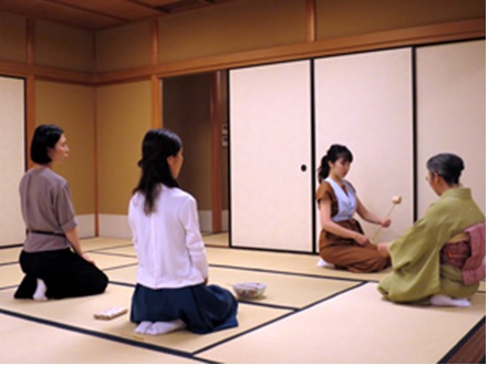 这种女性习茶之风,进入大正时期,以“家元”为首的茶道组织,专门设计了为女性所用的“女子点茶”作法以及课程内容。昭和初期,随着女性地位的逐渐提高,女性就职受到推崇,“茶道老师”这份体面的终身职业便成了许多女性争相谋取的对象。特别是战后,里千家通过电视等媒体,宣传“茶道是女性应当修习的传统礼仪作法的最后牙城”,“作为综合艺术的茶道,是所有传统的日本文化的最后的牙城”等,为争取主妇人群加入茶道,发挥了重要的宣传作用。日本有一种叫“おもてなし(o-mo-te-na-shi)精神”,简单地说就是周到而完美的“待客之道”或者“待人接物之道”。当初,女子学校的女学生被要求学习茶道礼仪的作法,其目的就是希望将来结婚之后能够完美地担当起“家庭内的おもてなし(o-mo-te-na-shi)任务”;做一位“贤妻良母”,是茶道精神的一种具体体现。茶道同时常说“一期一会”,强调珍惜每一次的结缘之谊,珍惜当下的每一刻,这种观念,通过女性茶道的教育,已渗透到日本社会的各个层面。茶道在明治维新的社会变革中,通过一系列自我改革举措的实施,获得了新生。