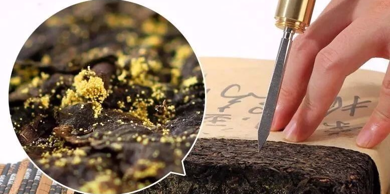 黑茶中的贵品茯砖茶,有一道独特的发花工艺,这也是茯茶品质风味形成的关键工序,因真菌呈金黄色,俗称“金花”。