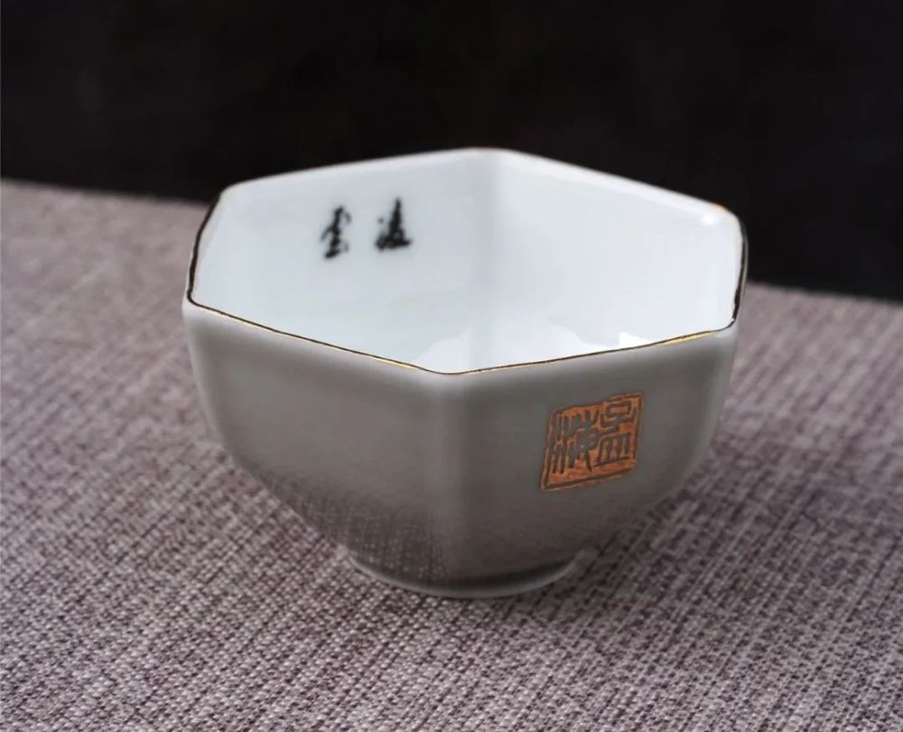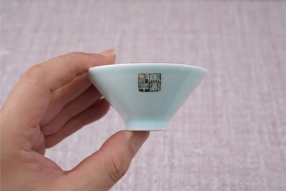 瓷杯胎壁轻薄,釉面温润细致,瓷质致密坚硬。